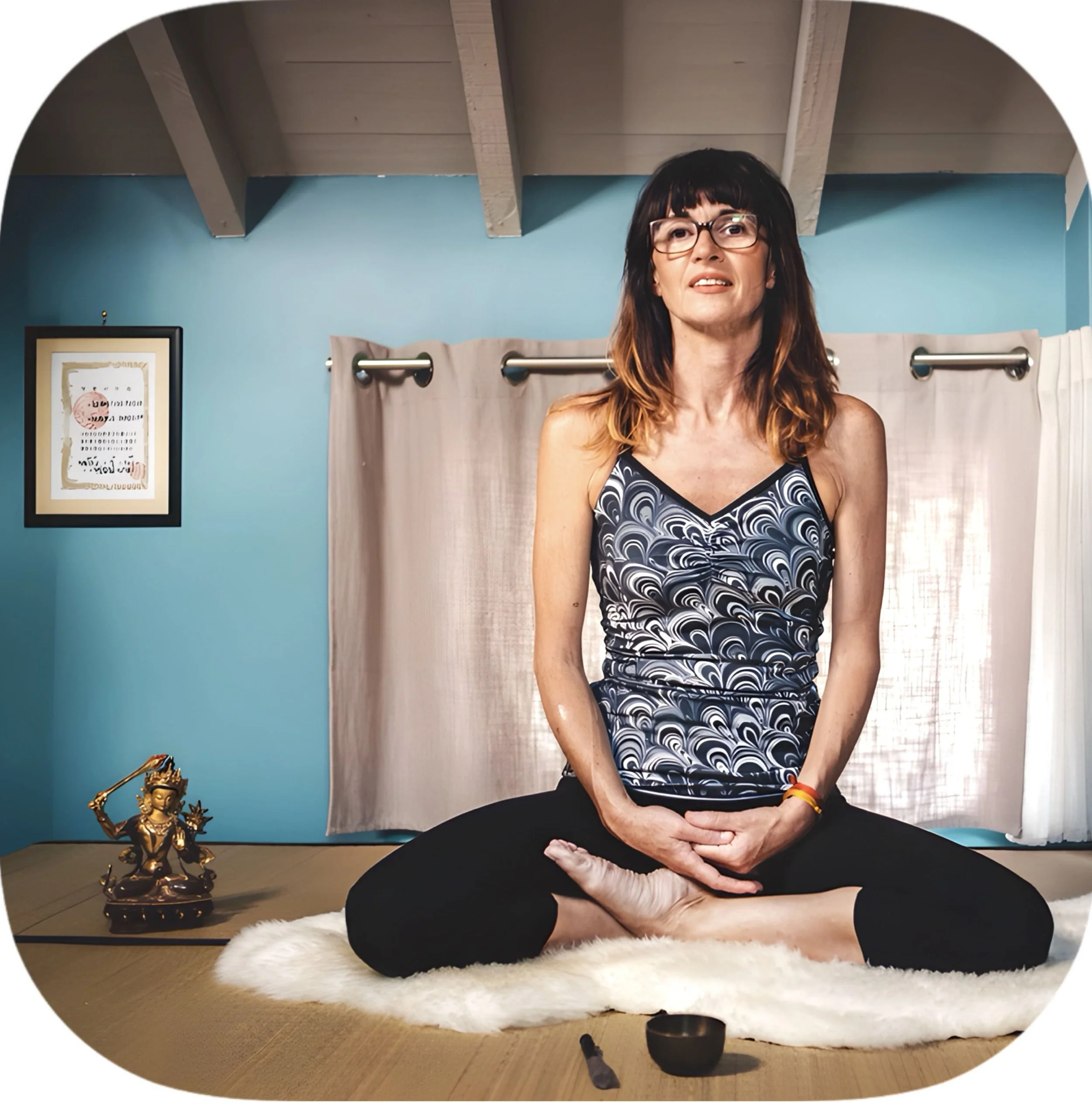 Après avoir étudié le Vajrayana Buddhism "La Voie du Diamant" pendant plus de 5 ans à Londres, Murielle se sent connectée de manière innée à l'enseignement du Bouddhaplutôt qu'à une école particulière, adoptant la pratique du Yin Yoga pour mettre en œuvre son aspiration et sa recherche sur le chemin spirituel. Son approche est douce et compatissante et se concentre sur la respiration, le lâcher-prise et le laisser être, ce qui englobe si bien l'essence de la pratique du Yin-Yoga.
